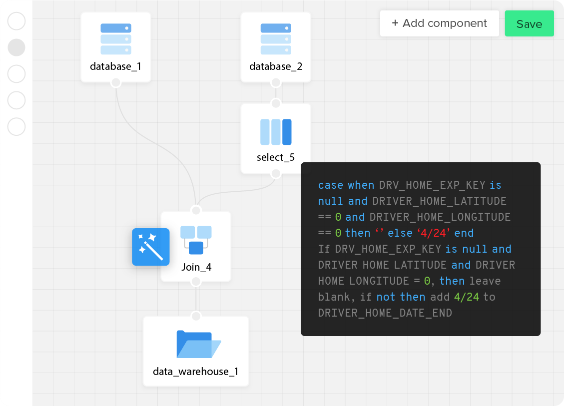 エンジニアも非エンジニアも、数分で簡単にデータパイプラインを構築し、管理できるようにします。ローコードでも、豊富な式言語、高度なAPI、Webhookを使用して、お持ちのスタックをカスタマイズして追加することも可能です。